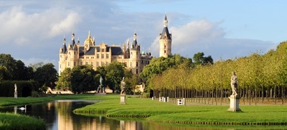 A place full of romantic charm... As a UNESCO World Heritage site, Wismar is particularly well-known for its harbour and traditional shipping and fishing industries. The many historic buildings and houses in the centre have been carefully restored to their original hanseatic style. Today these buildings house the small cafés, restaurants Schwerin The city of the seven lakes and artistic flair. Schwerin has just short of 100,000 residents, making it Germany's smallest state capital. It enjoys a picture-perfect location among a series of lakes that reflect both the passing clouds in the northern sky and the city's most famous landmark, Schwerin Castle. A fitting landmark: light, airy, bright and welcoming – just like the city itself.